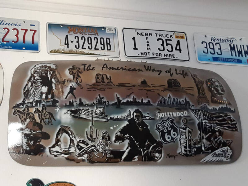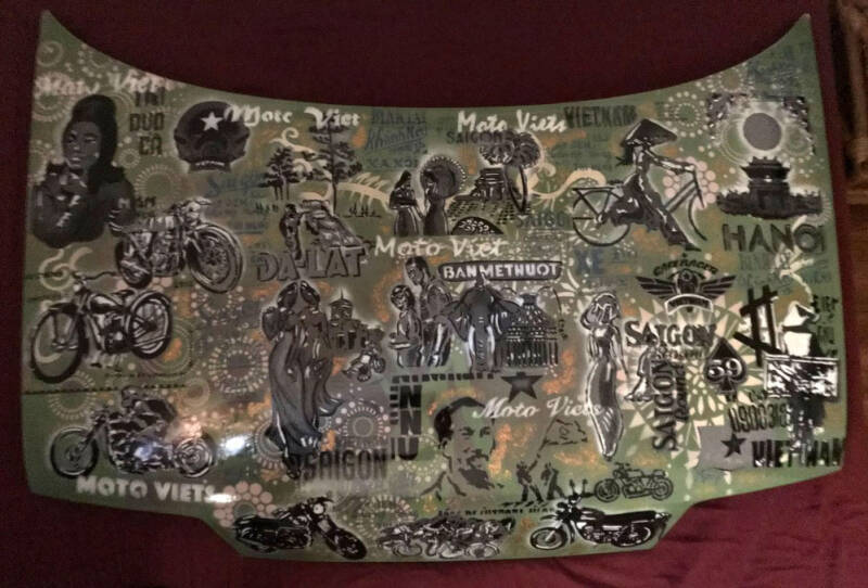 Einen großen Teil meiner Kunst habe ich auf Auto- und Motorradteilen verewigt. Warum fragt Ihr euch? Ich habe eine Leinwand für meine Kunst gebraucht, die den Platz bietet, auf dem die Farben und Lacke gut haften und einfach stylisch aussehen.